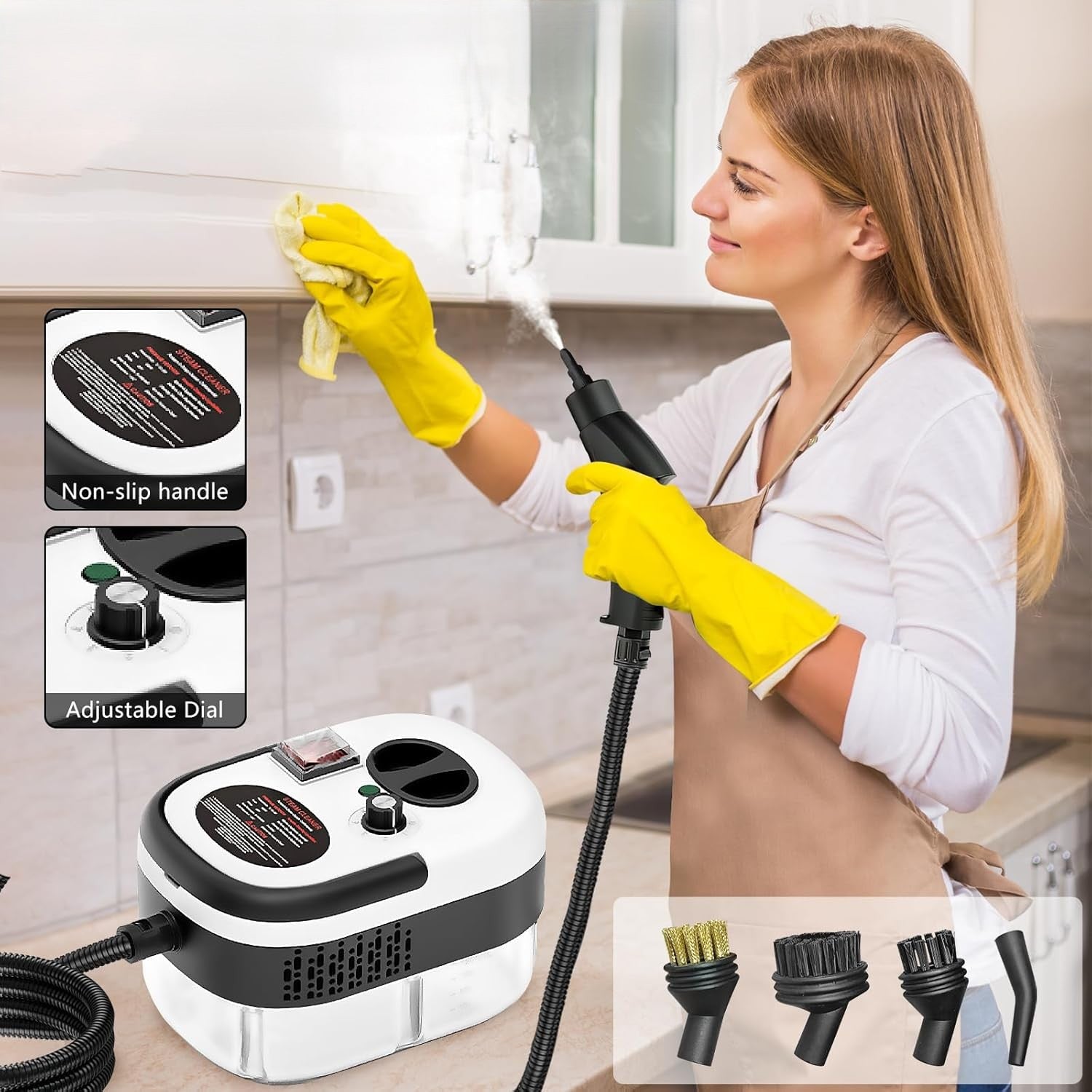 Zahvaljujući snažnom grejaču i brzom zagrevanju, uređaj je spreman za rad za svega nekoliko sekundi. Različiti nastavci omogućavaju lako čišćenje pločica, fuga, slavina, sudopera, šporeta, rerni, stakala i teško dostupnih uglova. Kompaktan dizajn i jednostavno rukovanje čine ga praktičnim rešenjem za svakodnevno čišćenje bez napora i ribanja.