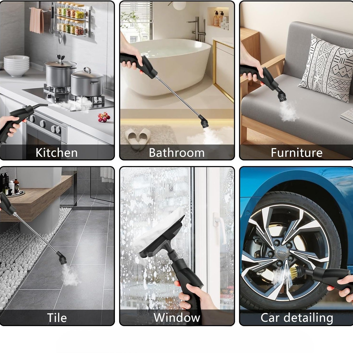 Paročistač je pogodan za pločice, fuge, keramiku, metalne površine, staklo, slavine, sudopere, šporete i rerne. Može se koristiti i za teško dostupna mesta gde se prljavština najčešće zadržava. Preporučuje se da se osetljive površine prvo testiraju na manjem delu.